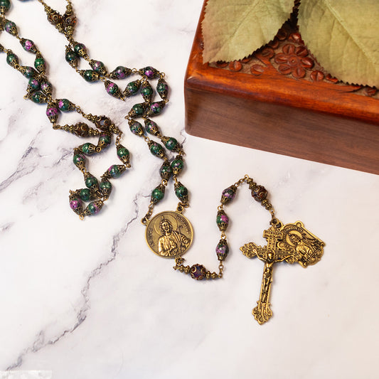 PersonalizableAntique Gold St. Benedict 5 Decade Rosary Bracelet