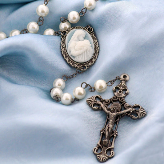 Capped Gold Pearl & Rhinestone St. Benedict Rosary