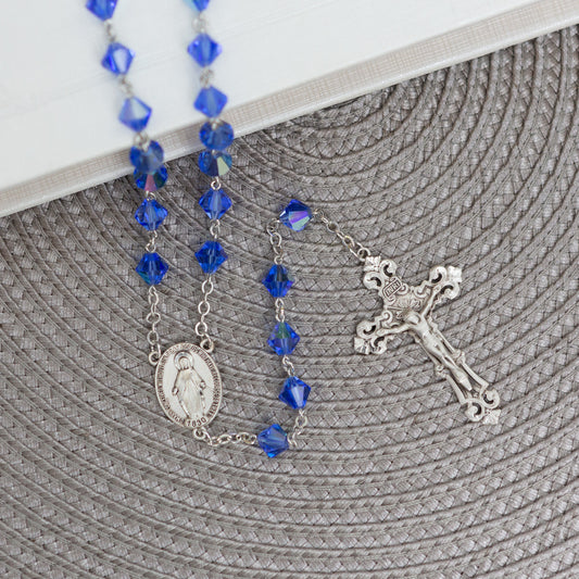 PersonalizableSwarovski Sapphire Rondelle and Sterling Rosary