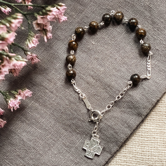 Sale PersonalizableSt. Benedict Crystal Rosary Bracelet - Black, Grey, or Champagne