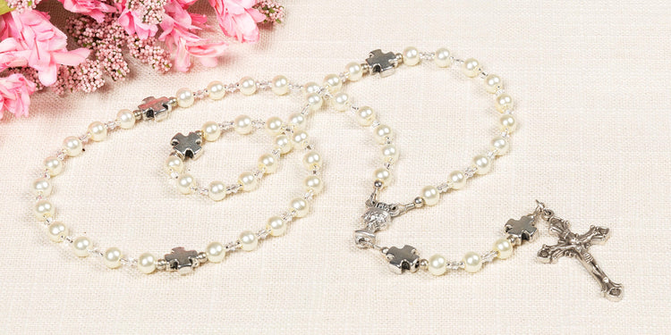 PersonalizableAurora Borealis Clear Crystal Guardian Angel Auto Rosary