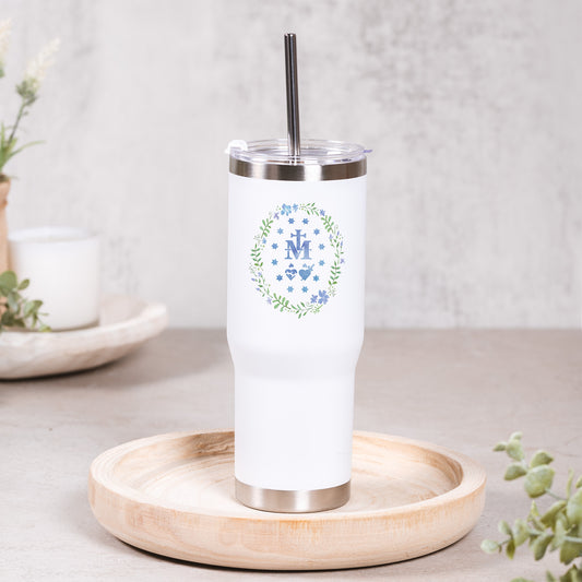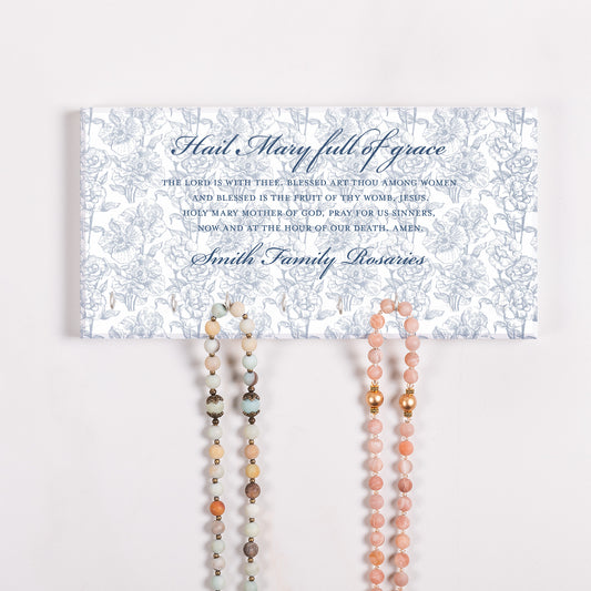 Blue Crystal & Floral Bead Miraculous Medal Rosary