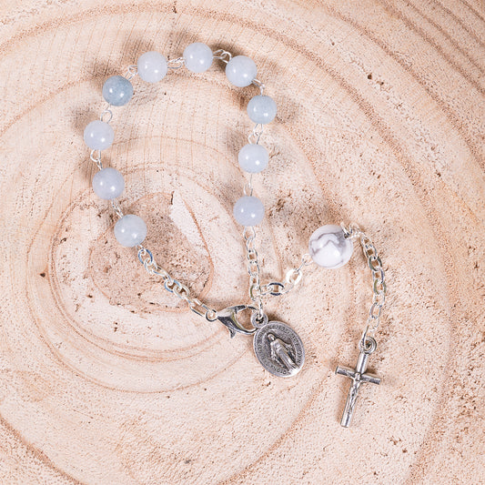 Petite Stone Bead St. Benedict 5 Decade Rosary Bracelet