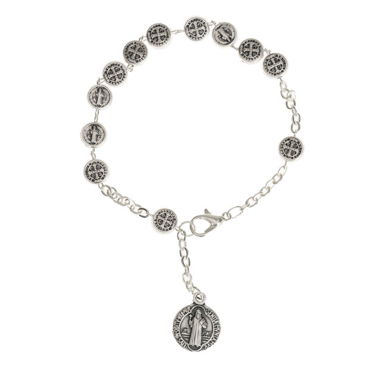 PersonalizableSilver St. Benedict Medal Rosary Bracelet