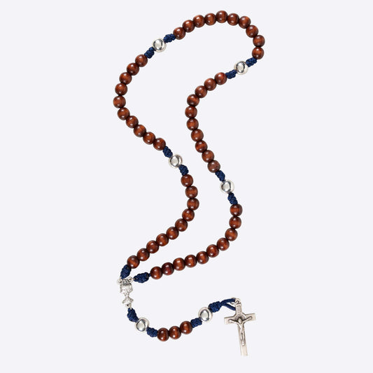 Navy Blue Wood Bead Rosary