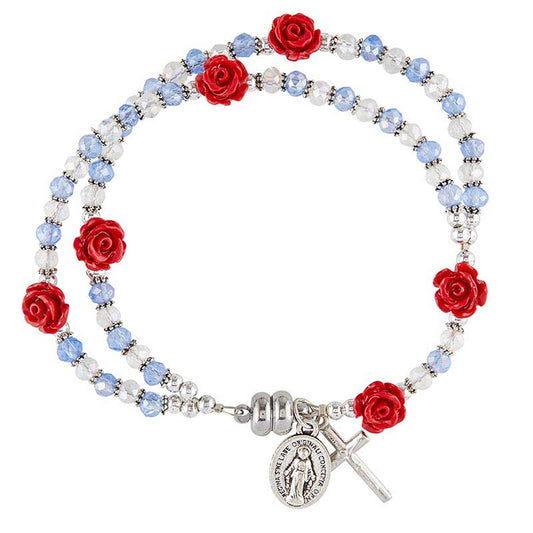 Miraculous Medal Rose Bead Full Rosary Bracelet