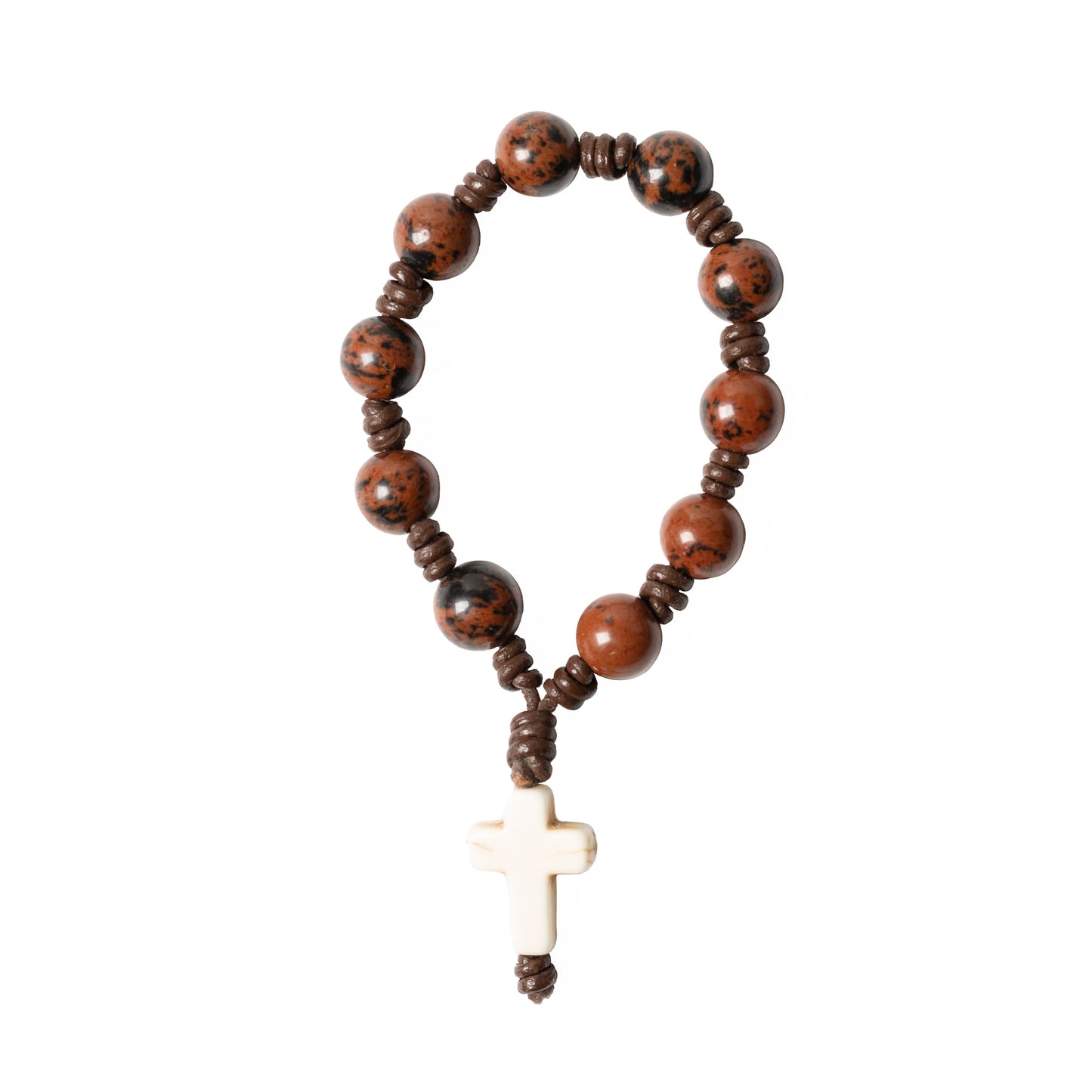 The Scapular - or habit - of the Carmelite order was first chosen by St. Teresa of Jesus (St. Teresa of Avila) when she reformed the order in the 1500's. The brown color reinforces the idea of humility and hard work in imitation of Jesus and the Blessed Virgin Mary. Made with brown beads, brown leather cording, and a marbled Howlite cross, this tiny finger rosary compliments the colors of the Carmelites. One of the smallest aids for prayer, it slips easily into a pocket. A memorable gift for any Carmelite monk, nun, third order Carmelite, or anyone with a special devotion to St. Teresa of Avila.