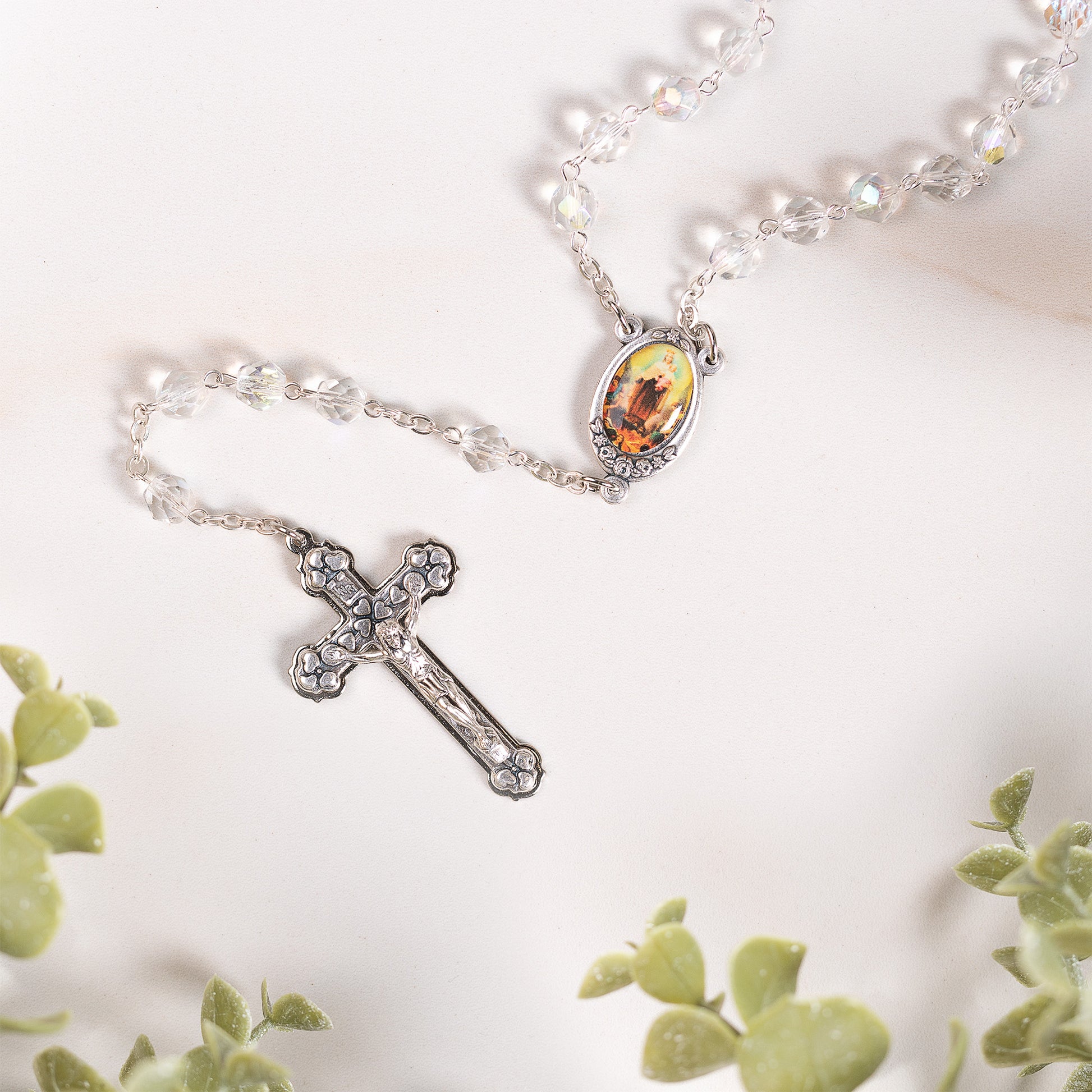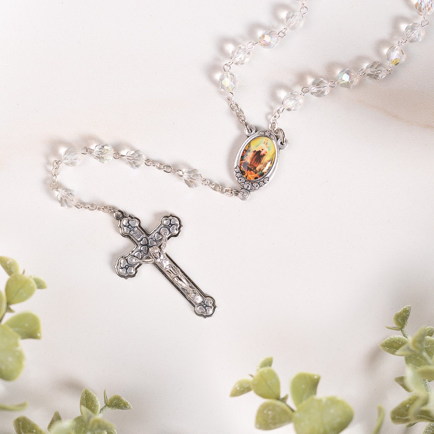 - Brilliant Czech crystal five decade rosary
