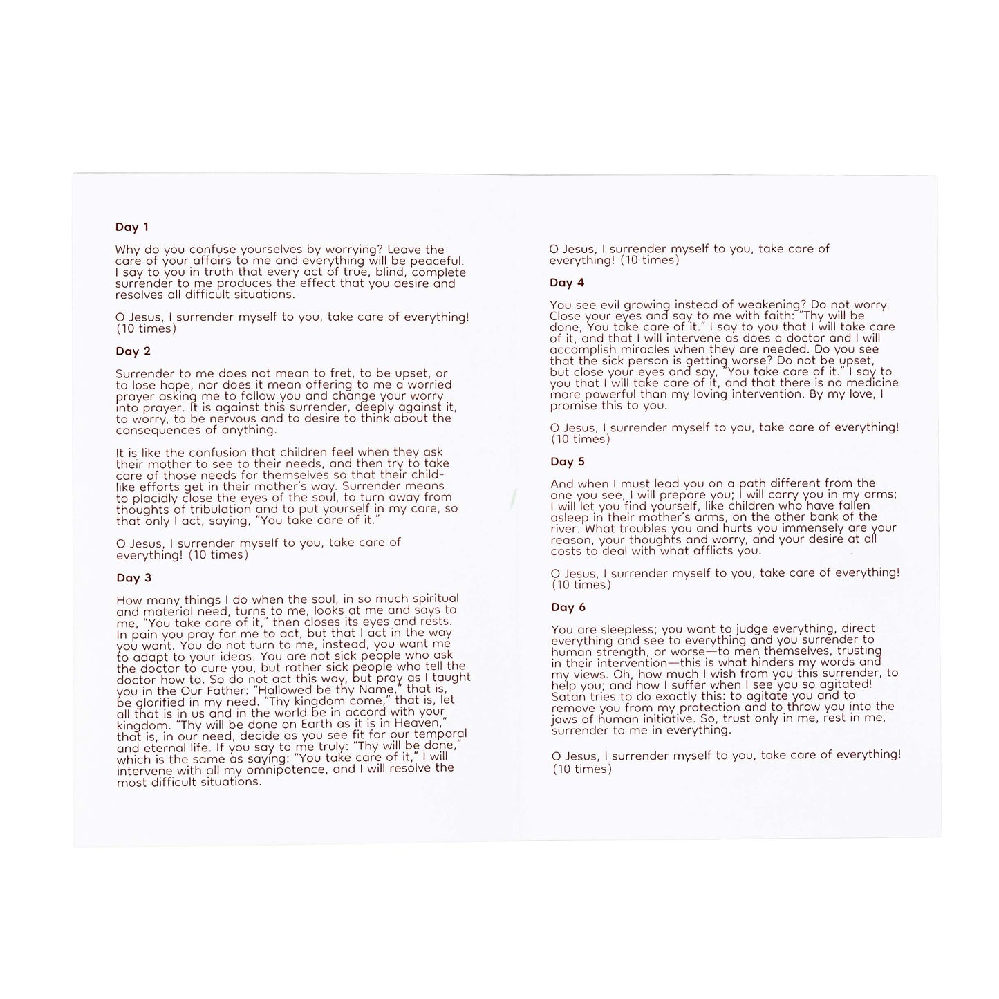 The enclosed prayer card includes instructions for this beautiful novena, a means of surrendering all your cares to Him. A perfect gift of faith, trust, and encouragement for a loved one who is suffering. or anyone struggling to grow in trust in the Lord.