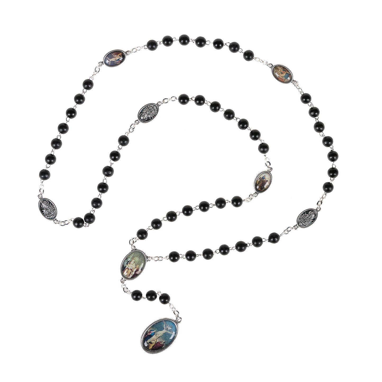 This distinctive Chaplet of the Seven Sorrows of Mary is made of wooden beads and oxidized silver medals featuring full color images of each of Mary's Seven Sorrows. The silver tones complement the rich espresso tones of the round wooden beads. Instructions for the chaplet are included on a miniature prayer card. Honor Our Lady and console her heart by reverencing her Seven Sorrows in this ancient devotion given to St. Bridget of Sweden in the 1300's by Our Lady. A special devotion for those who love Mary and a faithful and meaningful gift. Made in Italy.
