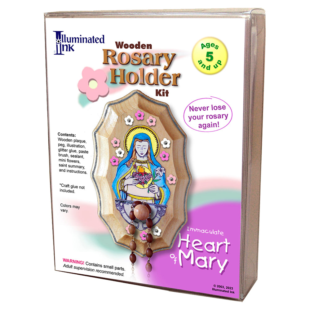 They will customize the Immaculate Heart design themselves with paint and decorations. The finished rosary holder measures 3" x 5". Perfect for crafty kids and a great First Communion present or craft activity for families, schools, or faith formation classes. Recommended for Ages 5+.