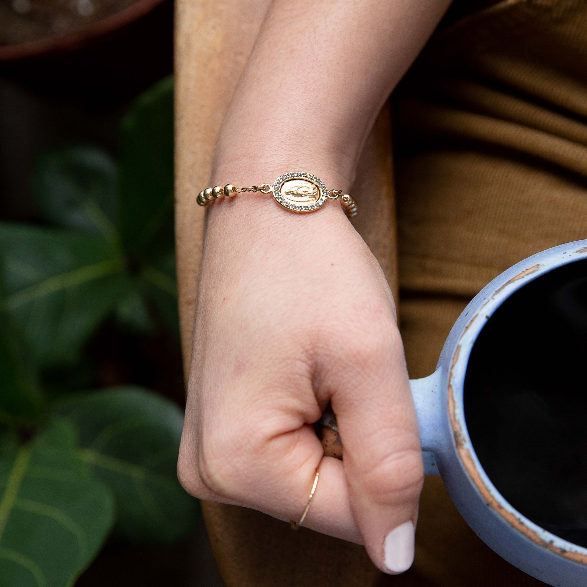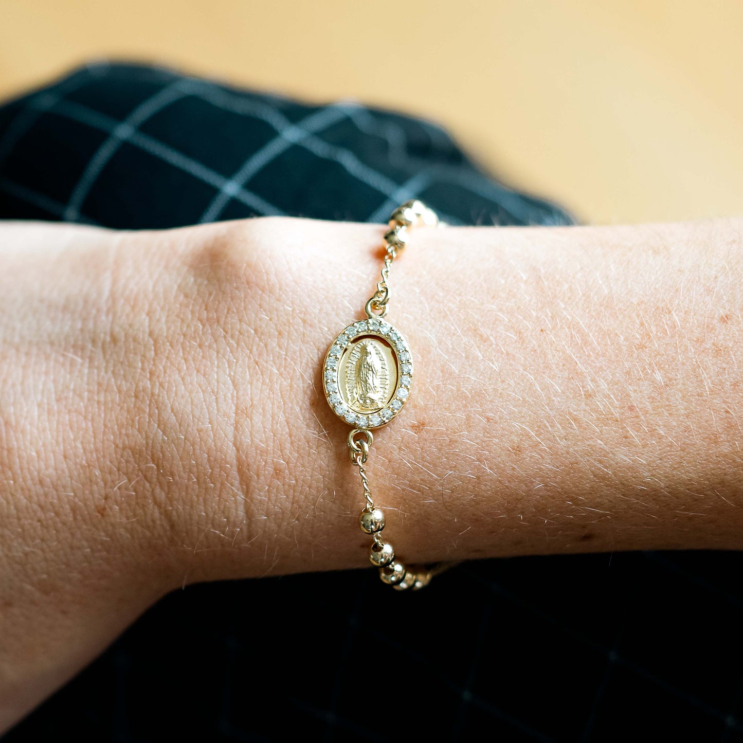 - Gold rosary bracelet