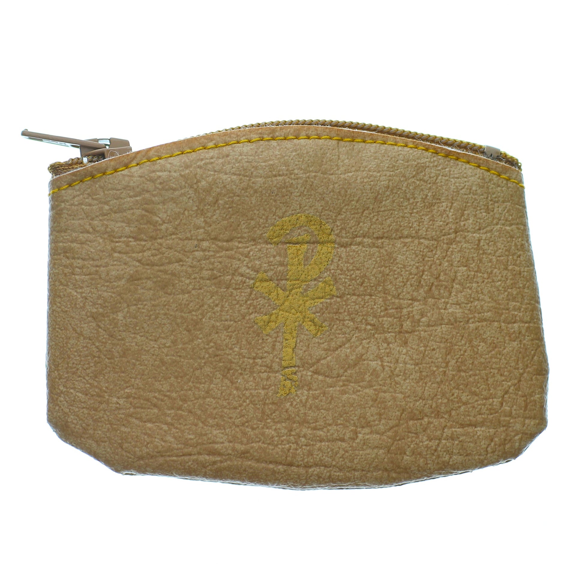 This beautiful golden rosary pouch is a small compact size that can fit in your pockets or purse. It features "My Rosary" on one side, along with an image of the Chi-Rho symbol and zipper closure, which keeps your rosary safe when not in use.
