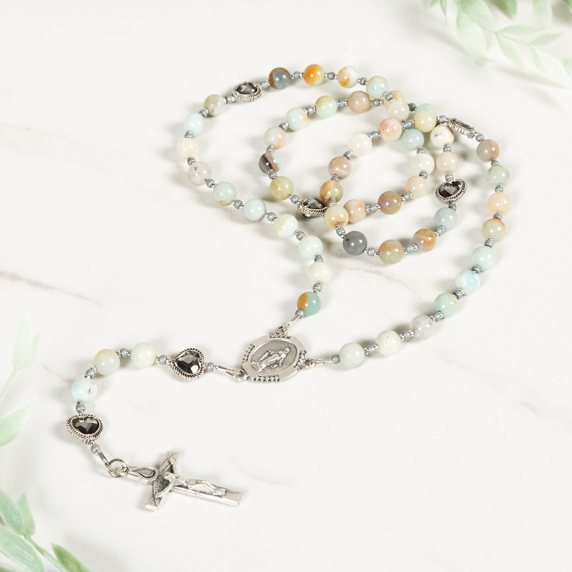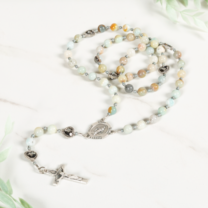- Flower amazonite bead rosary