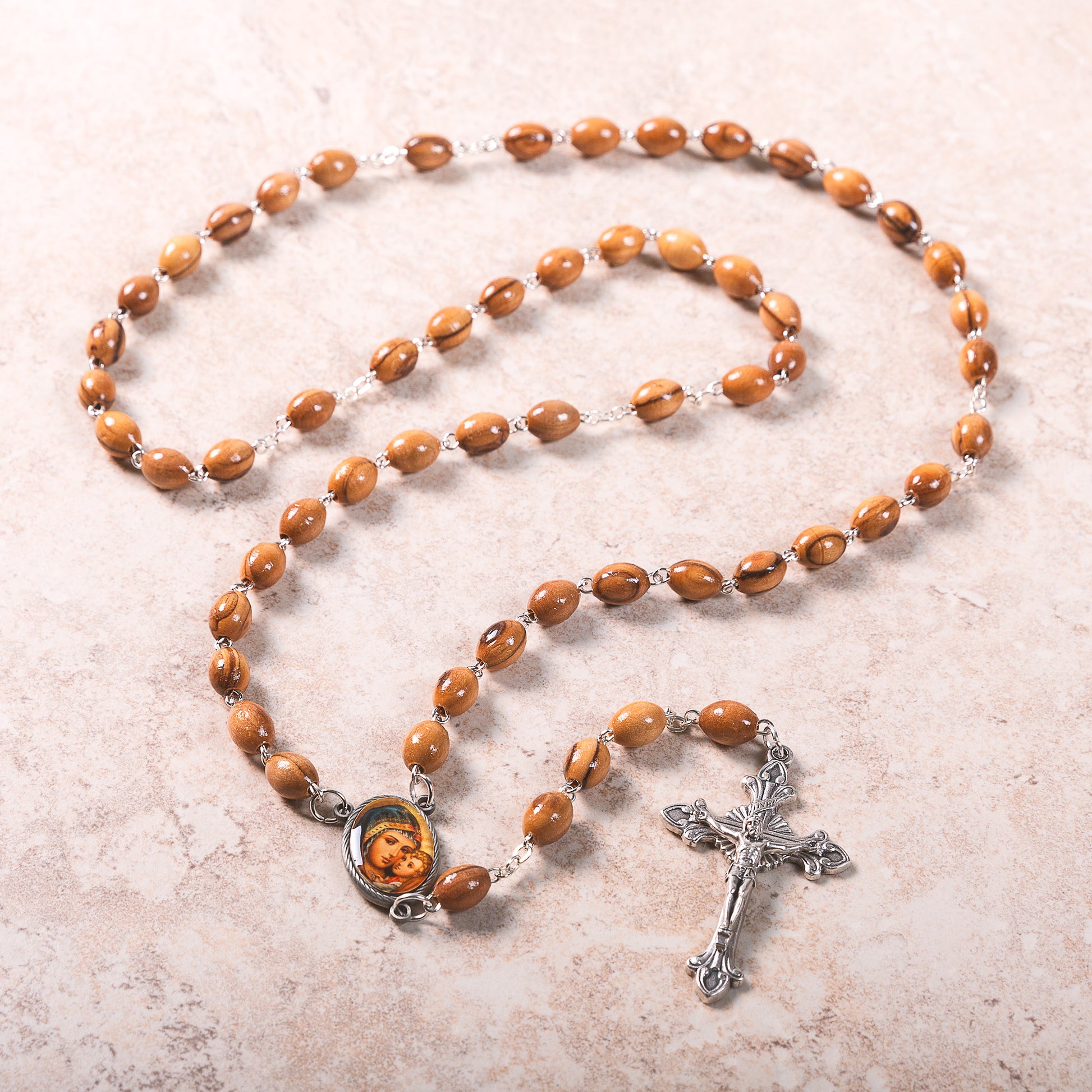 + Natural variations in olive wood and the handcrafting process make each individual rosary as unique as its recipient.