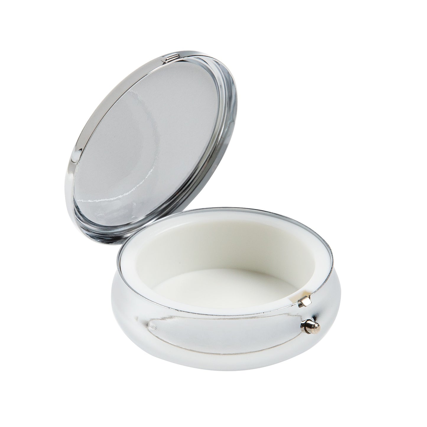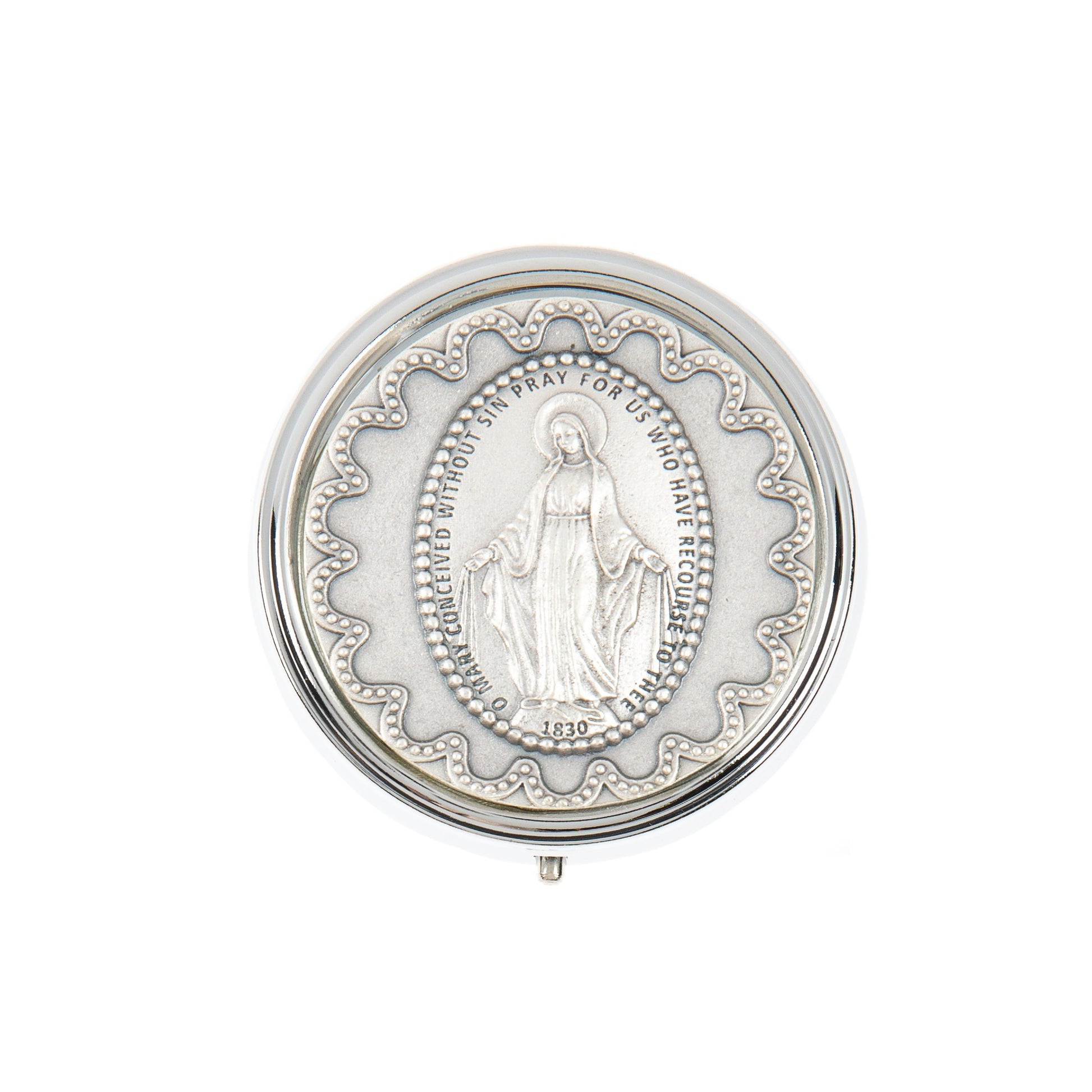 This classy silver rosary case has a sleek metal exterior with a clean, cream-colored interior. The image of the Miraculous Medal on the cover and the elegant scalloped border remind you to seek out Mary's motherly intercession, asking her to guide you to her Son. Pair with a rosary to make a thoughtful gift for any Catholic. Crafted in Italy