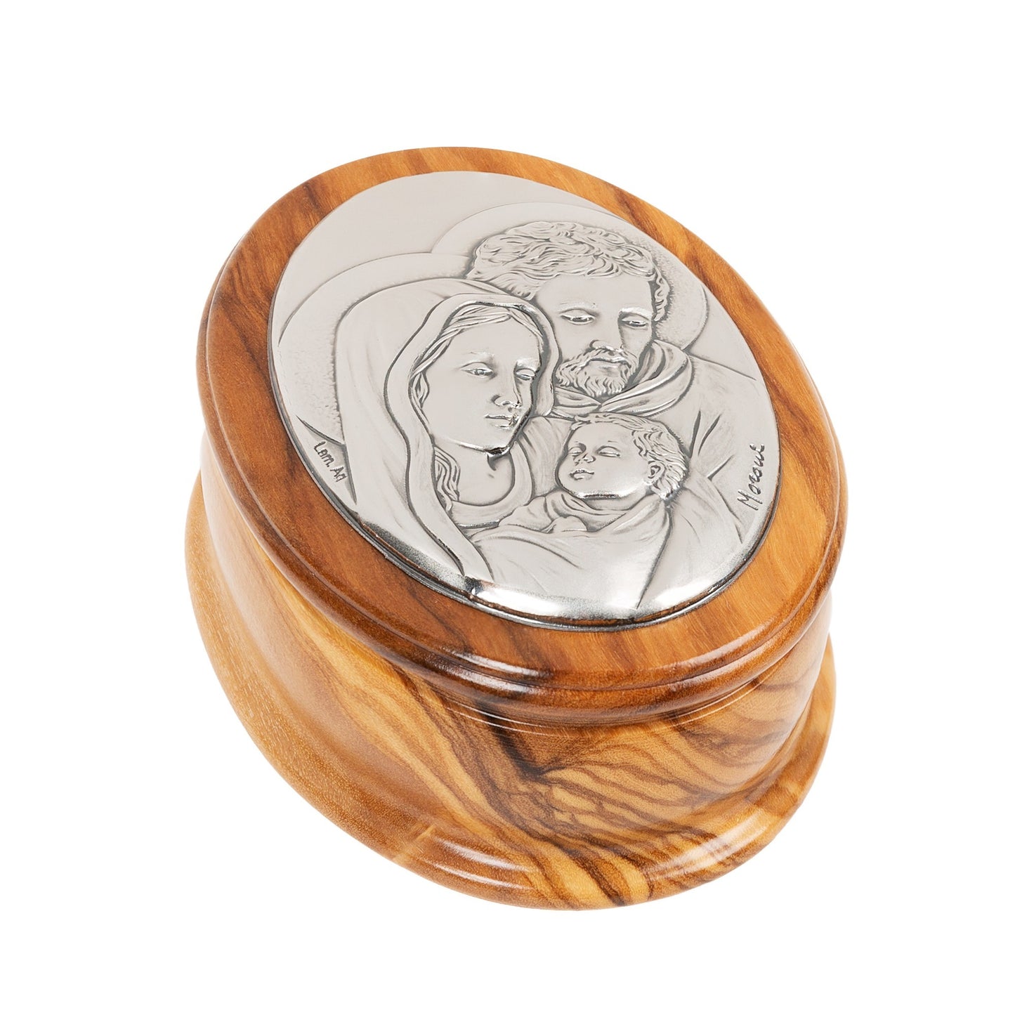 This sweet Italian made Rosary box is the perfect spot to store your Rosary. The wooden box is beautifully complemented by the tender image of the Holy Family on a metal plaque lid. Place this lovely box next to your bed as a gentle reminder to pray. Or give as a gift for a sacrament or any other occasion.