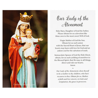 Our Lady of the Atonement is a devotion of great help to anyone who is suffering or struggling with difficult circumstances. Our Lady stood with faith, love, and strength at the foot of the cross while participating in Our Lord’s Passion. The vibrant coloring of this rosary’s beads reflect the most precious blood of Jesus that was shed for us. As your fingers move around the mysteries you will feel the cool, smooth Jasper beads. This ancient stone is listed in the Old Testament on the “Breastplate of Judgment” (Exodus 28:17-21) and is also listed as one of the gems found in the foundations of the New Jerusalem (Revelation 21:19-20 and Isaiah 54:11). The centerpiece shows Our Lady of the Atonement holding the Christ Child who is carrying a cross in his right hand. Around the image are the words, “Our Lady of the Atonement - Ecce Mater tua (Behold Thy Mother). On the reverse side are the words, “Rosary League Oct. 7 1901” and the letters, “STA”. October 7th is the feast day for Our Lady of the Rosary and “1901” is the year that the Society of the Atonement began the Rosary League to encourage devotion to Our Lady through praying the rosary. The letters “SA” stands for “Society of the Atonement” and the “T” is actually a Tau cross which signifies that the Society is based on Franciscan spirituality. This rosary is a wonderful gift for anyone who wishes a closer relationship to Christ through his Mother Mary, for those who are suffering, those with a special devotion to Our Lady of the Atonement or Our Lady of Sorrows, or anyone who has come into communion with the Roman Catholic Church from an Anglican background.
