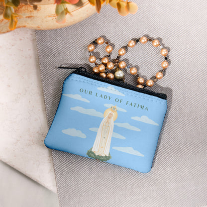 Take the words of Our Lady of Fatima to heart by praying the Rosary everyday. This rosary pouch is a great way to reminder for you to pray your Rosary and to keep it close to your side all day long. Rosary pouches protect your rosary beads and this exclusive case is the perfect size to fit in your pocket, purse, or backpack!