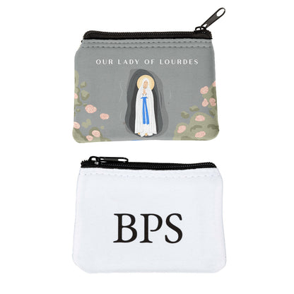 Our Lady of Lourdes is tenderly depicted on this rosary pouch. She is portrayed as she appeared to St. Bernadette Soubirous. These are the apparitions that culminated with the creation of the miraculous spring in the small French town. Rosary pouches protect your rosary beads and keep them on hand whenever you need them, and this exclusive case is the perfect size to fit in your pocket, purse, or backpack.