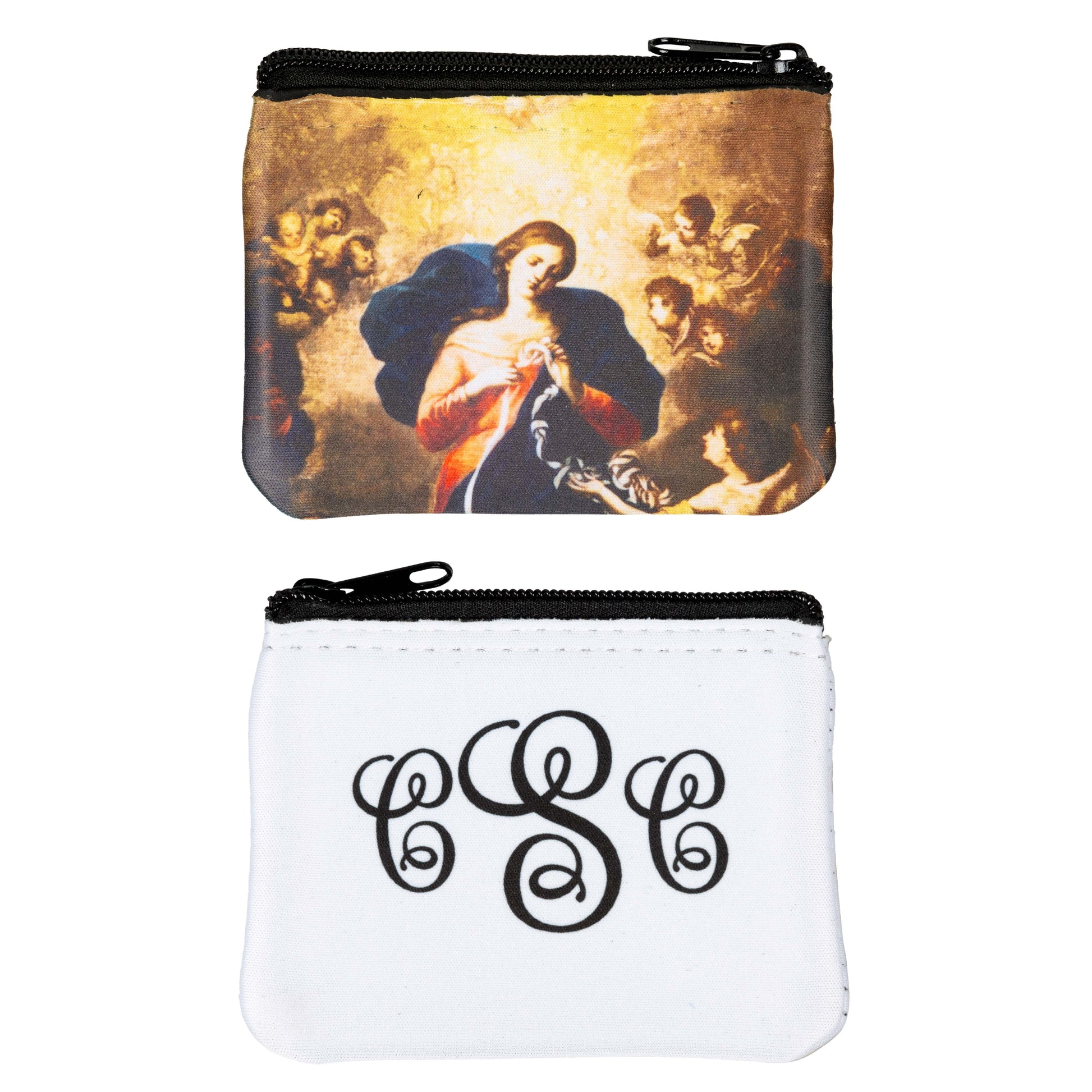 Keep your rosaries safe while you ask for Our Lady's intercession with this one-of-a-kind rosary pouch! This soft, personalized case features a painting of Our Lady Undoer of Knots, a devotion that has been around for centuries but has recently exploded in popularity. Rosary pouches are essential to protect your rosary beads, and this exclusive case is the perfect size to fit in your pocket, purse, or backpack! Personalization is included, so you can make this case your very own. Ideal gift for First Communion, Confirmation, or RCIA.