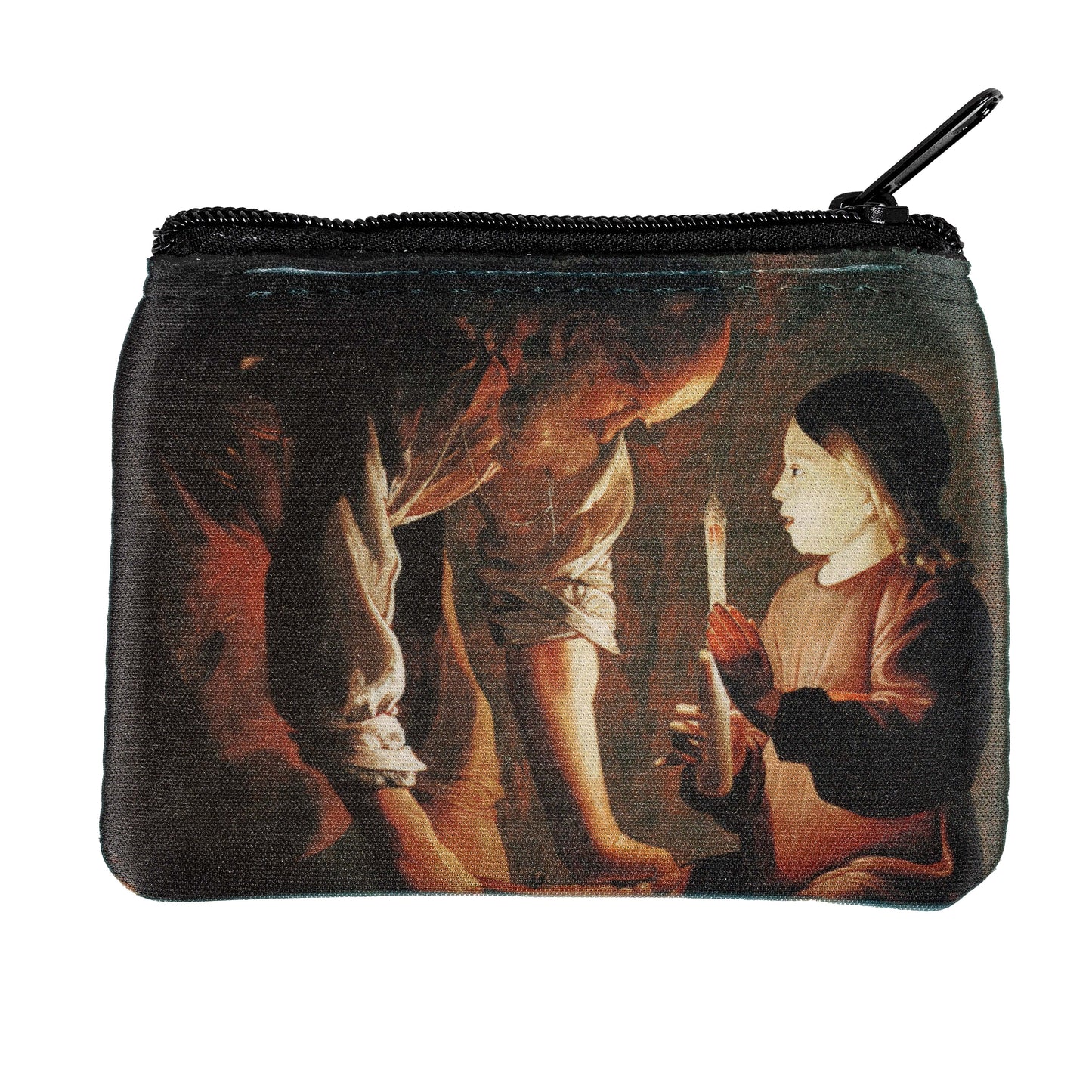 Keep your rosaries safe while you ask for Our Lady's intercession with this one-of-a-kind rosary pouch! This soft, personalized case features a classic image of St. Joseph the Carpenter. Rosary pouches are essential to protect your rosary beads, and this exclusive case is the perfect size to fit in your pocket, purse, or backpack! Personalization is included, so you can make this case your very own. Ideal gift for First Communion, Confirmation, or RCIA.