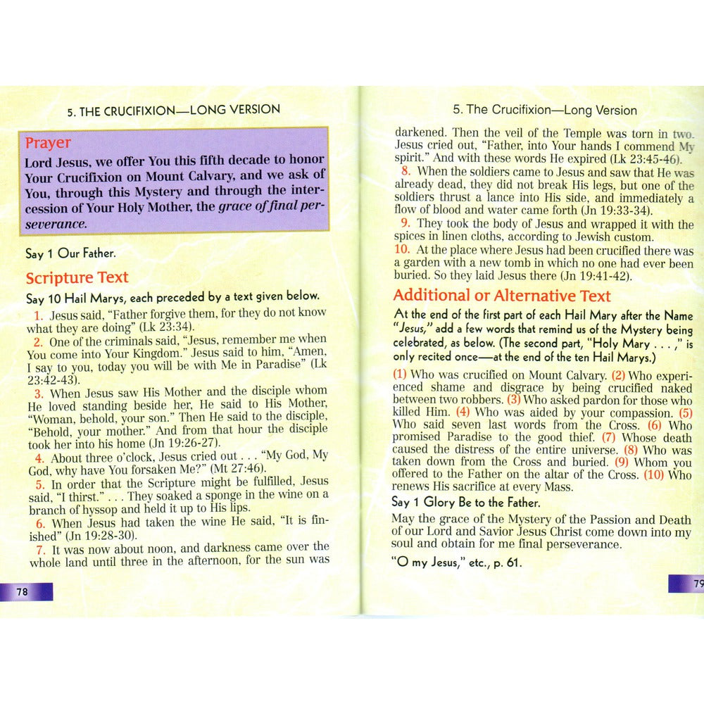 Pray the Rosary is a wonderful book meant to assist us in the beautiful devotion which Our Blessed Mother has asked us to pray daily the Holy Rosary. This new and expanded version offers a longer devotion, including Scriptural texts that offer a fuller context of the Mysteries, as well as the shorter version. The Additional or Alternative Text for each Mystery offers us a deeper expression of what is being celebrated when we pray the rosary.