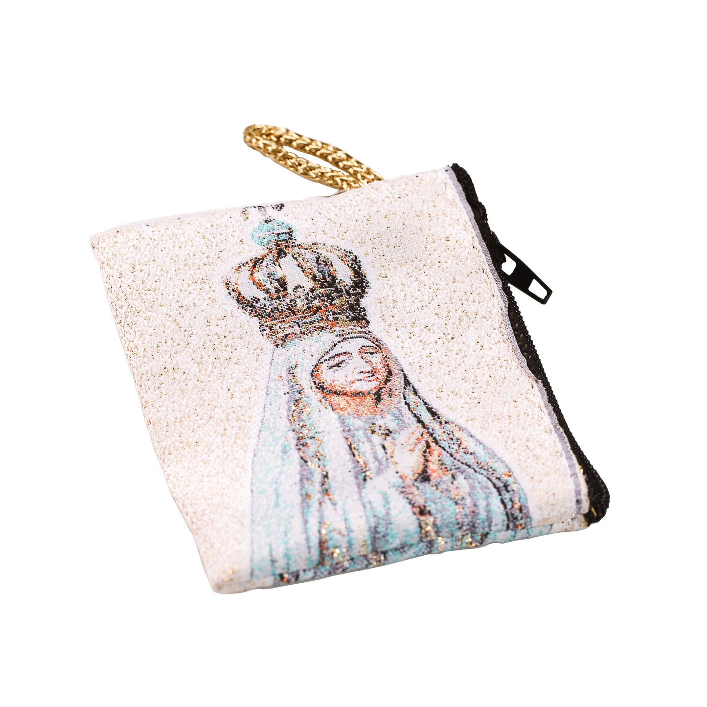 A serenely colored rosary pouch features the image of Our Lady of Fatima, hands clasped in prayer. Zipper closure and finger loop for carrying or attaching to a belt loop or bag. The perfect place for safeguarding your rosary when not in use, and the perfect gift for those devoted to Our Lady of Fatima.