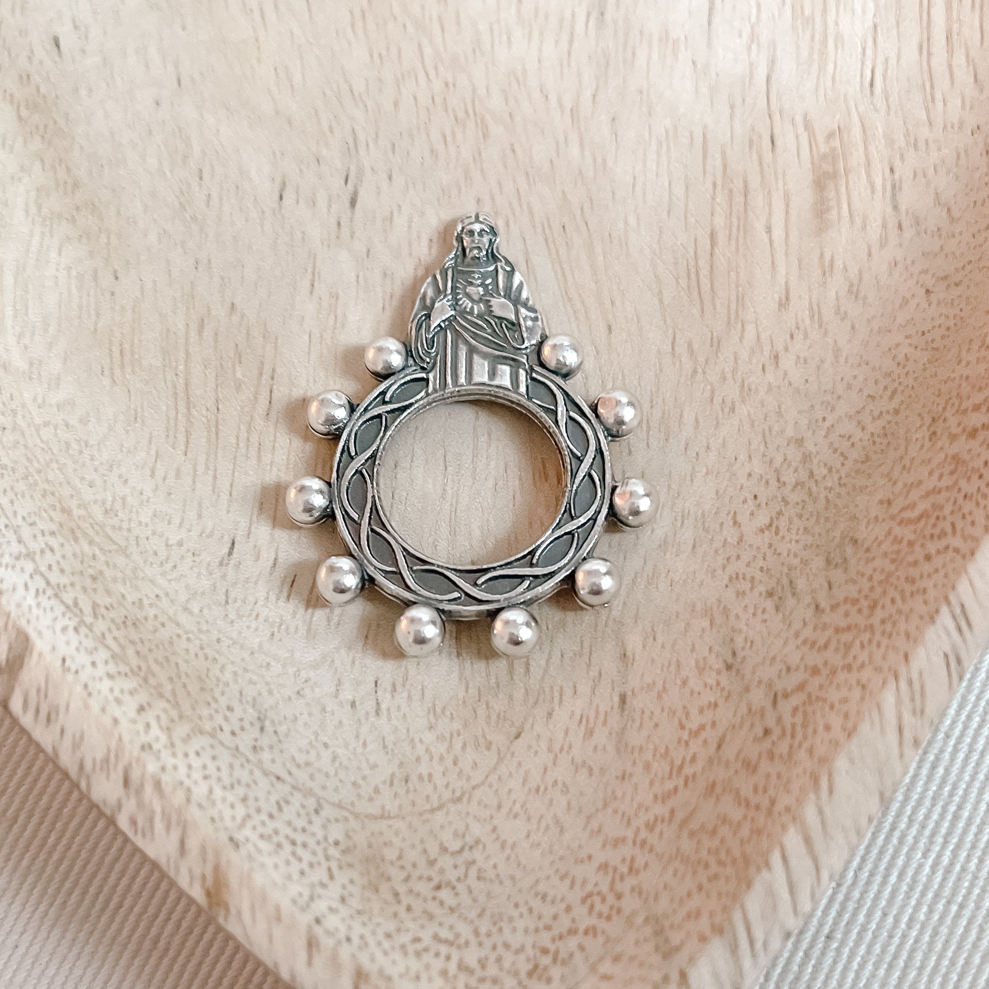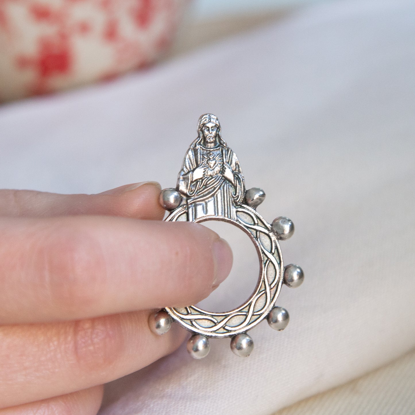 - Sacred Heart figure on each ring