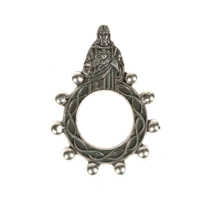 This set of five finger rosaries allows you to keep handy prayer tools in different places around your home. Your desk drawer, nightstand, or car console all offer a convenient spot for one of these oxidized silver pieces, meaning you'll always have a way to pray the rosary close at hand. A tiny figure of the Sacred Heart sits at the top of the ten notched beads, reminding you of Our Lord's endless love for you whenever you pray on this ring. Makes a thoughtful gift for a friend group or Bible study.