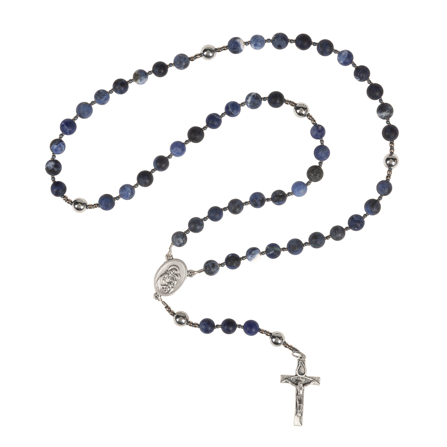 Hold your loved ones in your heart as you hold this rosary in your hands. Lift up prayers of intercession and gratitude for the gift of their life, starting with the memorial crucifix, moving to the Italian-made St. Joseph centerpiece and over each marbled navy blue bead. Includes a memorial prayer card. The unique crucifix is engraved on both sides with the words "in loving memory," and the teardrop shape at the head of the crucifix invites you to prayerfully offer the tears you shed for the soul of your departed loved one. Flat antique silver plated round beads add a radiant contrast and complement the cool tones of this rosary. Display at a funeral or memorial service, or gift to a bereaved friend as a thoughtful remembrance gift in a time of mourning. Includes a memorial prayer card.