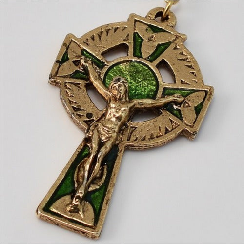 This fine rosary made by Ghirelli features emerald green crystal beads faceted to reflect light brilliantly. The Our Father beads are flanked by elegant filigree caps, and the centerpiece is a distinctive image of "St. Patrick Banishing the Snakes," including hand-enameled shamrock accents. The handsome Celtic Crucifix is the finishing touch. An exquisite and unique gift of faith and Irish heritage, it is will become a special favorite and a treasured companion in prayer. Makes a wonderful gift for St. Patrick's day or for any special occasion. Honor St. Patrick and invoke his protection over someone you love.