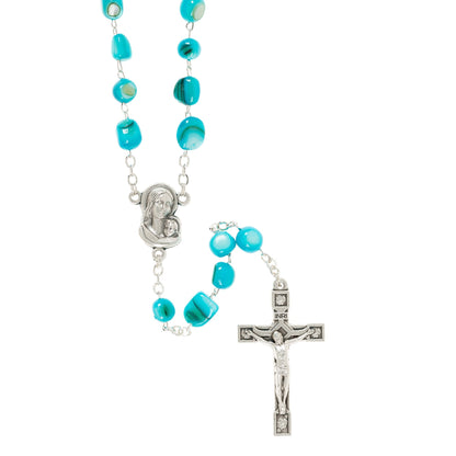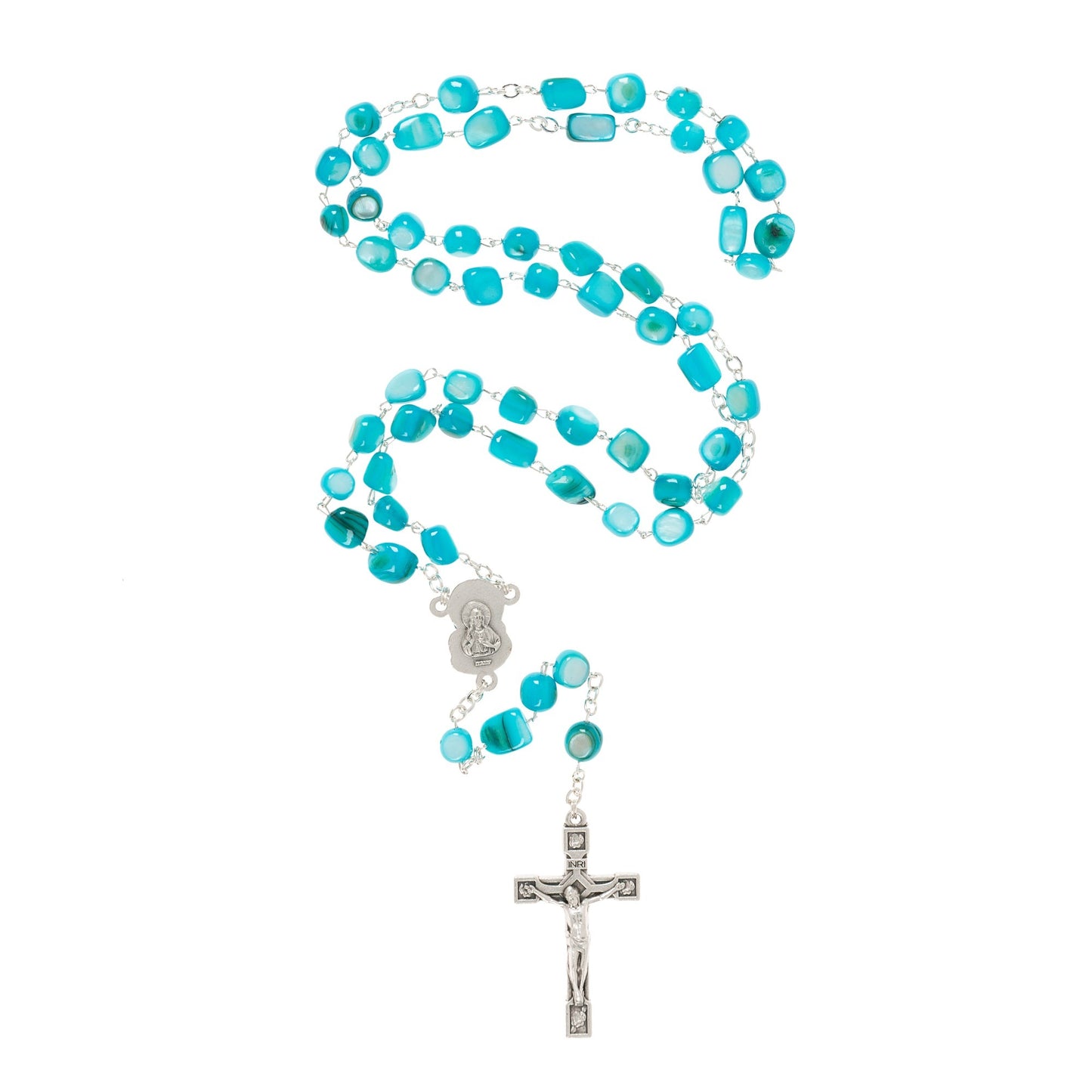 The calming shades of blue make this Madonna of the Streets glass bead rosary a moving meditation. A lovely prayer gift she’ll use for years to come. Bead sizes vary. A serene invitation to unite your heart with Our Lady's as you pray the holy rosary.