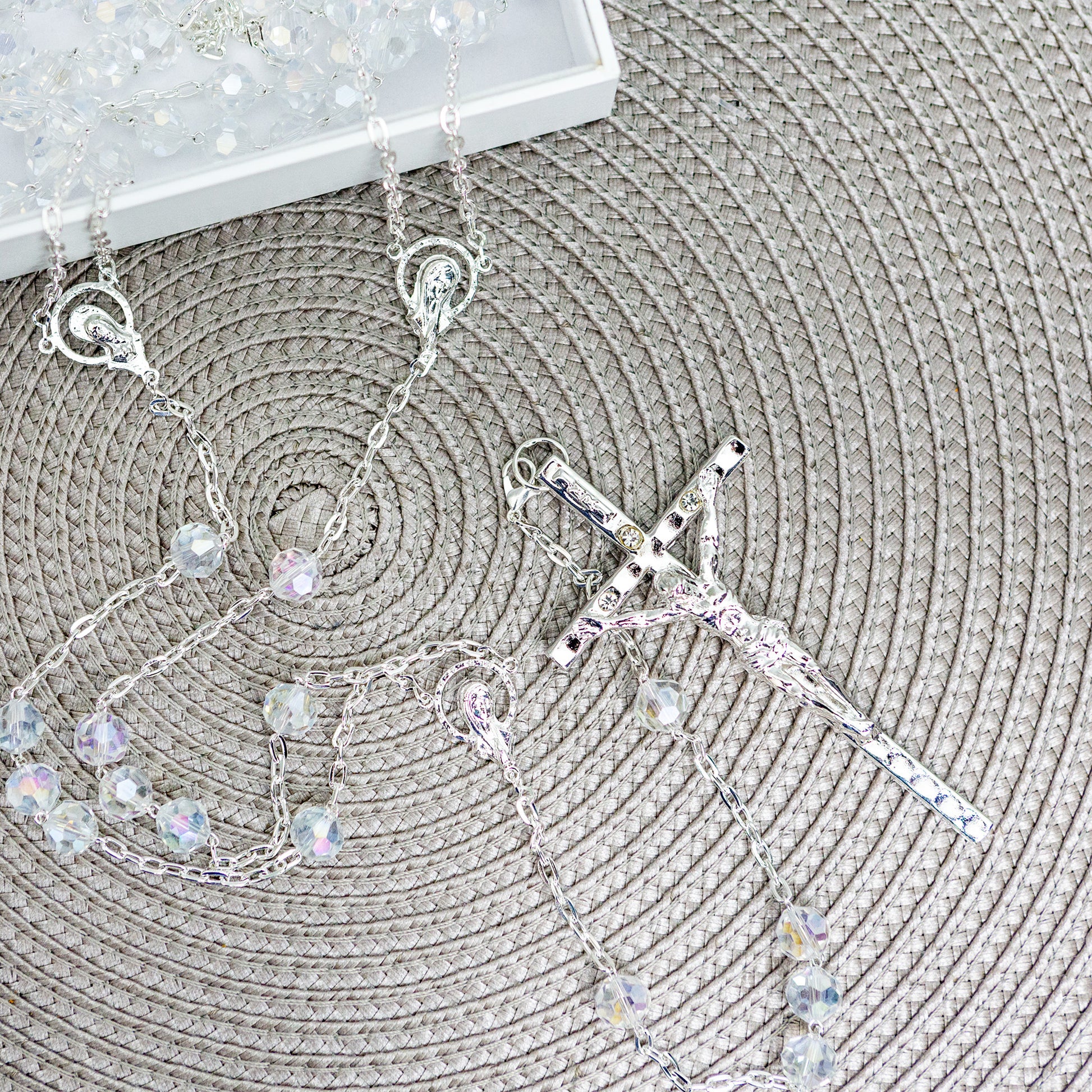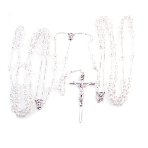 Handcrafted to ensure heirloom quality, this Wedding Lasso Rosary represents a beautiful tradition to demonstrate the holiness and union of marriage. The Rosary Lasso drapes around the shoulders of the kneeling Bride and Groom, groom's shoulder's first. The wife's Rosary Lasso loop has center of a bouquet of flowers which ends up resting on her chest. The loops, symbolic of never-ending love between bride and groom, also form the figure eight, mathematical symbol of infinity.